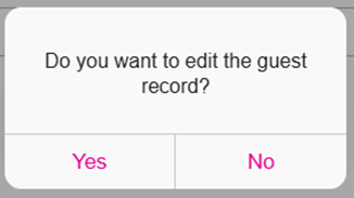 - The confirmation message 'Do you want to edit the guest record?' appears, with Yes and No options.