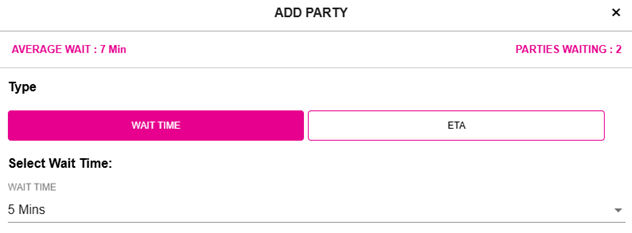 When the Type is set: press Add at the bottom-right of the Add Party window. You are returned to the Wait List screen where the newly-created Party has been added as a line item.
