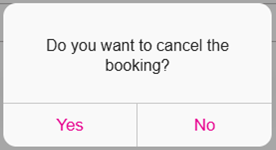 The confirmation message 'Do you want to cancel the booking?' appears, with Yes and No options.