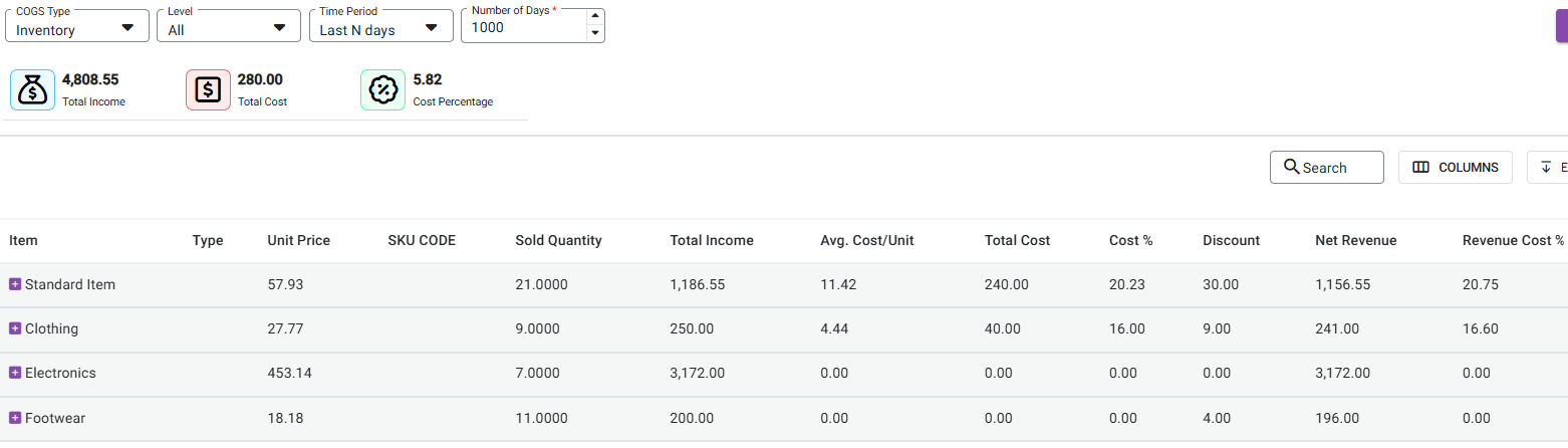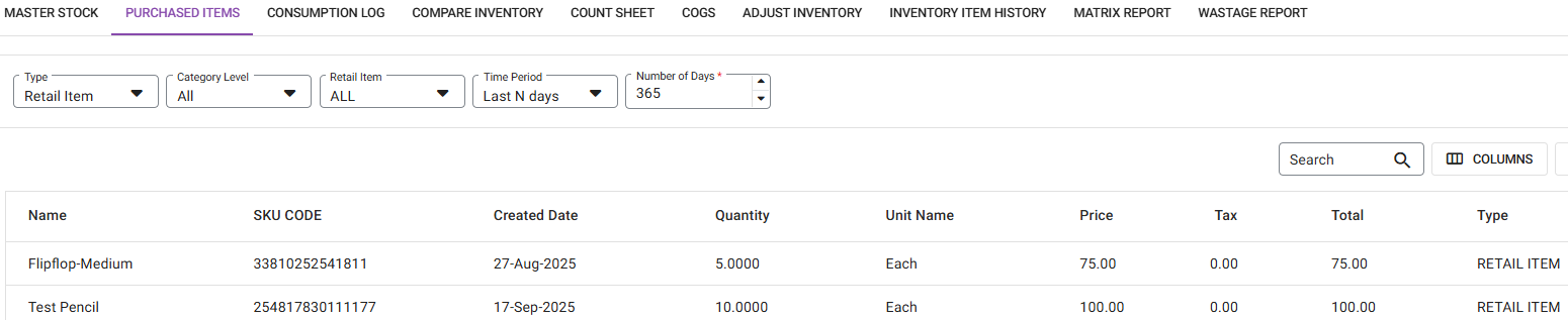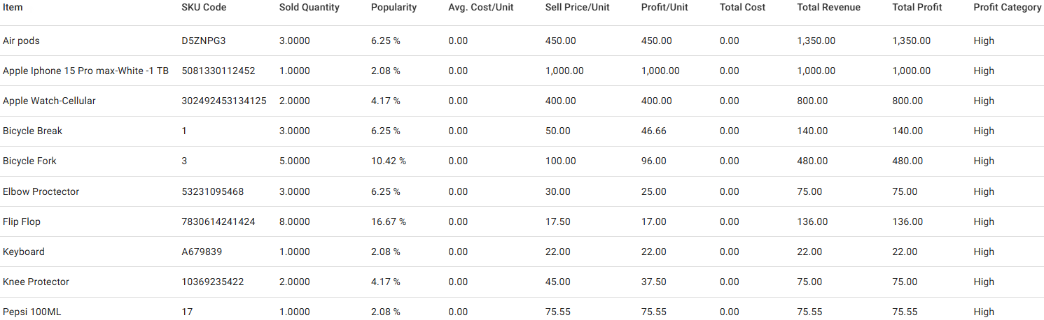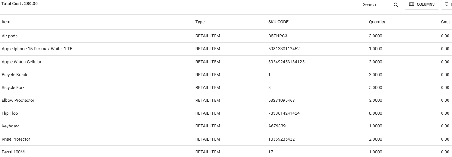 Price Per Unit: If Weighted Average Price was chosen in inventory settings, this column displays the last Weighted Average Price Per Unit. If Last Price was chosen, this column displays the latest received Price Per Unit.