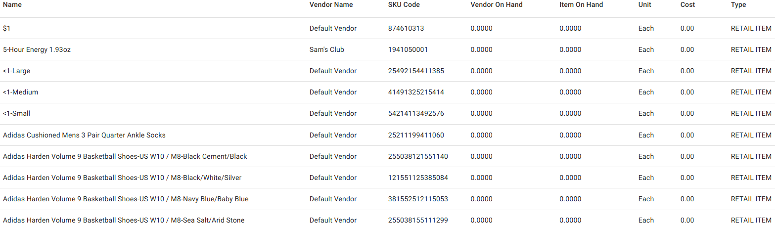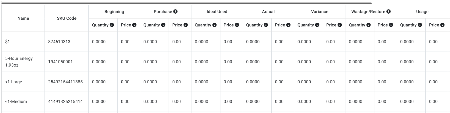 Note: If Last price was chosen in Inventory Settings, this column’s values will appear as NA.