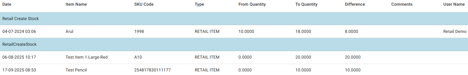 SKU Code: The user defined code in Item creation screen (not a mandatory field).