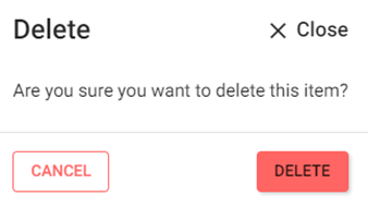 shown with two option OK and Cancel. The Delete pop-up appears with the message 'Are you sure you want to delete this