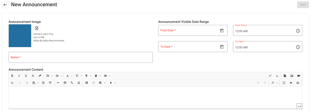 Announcement Image: You can upload an image (if needed) to represent the new Announcement.