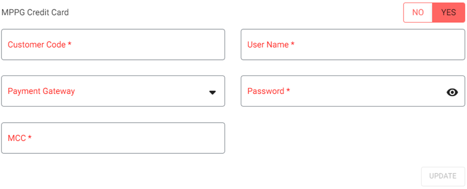 If the MPPG Credit Card toggle is enabled, the following fields appear for providing MPPG Credit Card information: