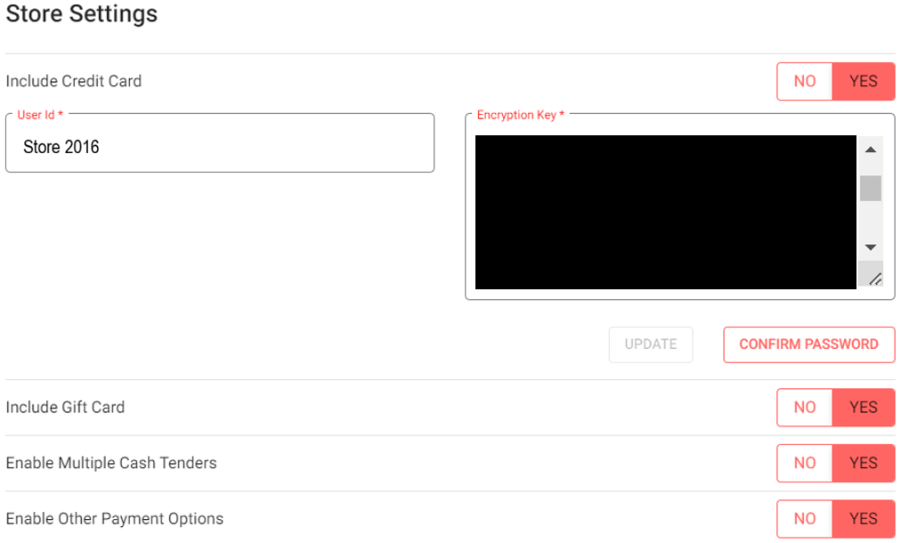 Include Credit Card - If enabled (YES), the User Id and Encryption