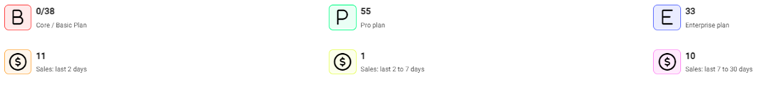 be able to view the tiles displaying amounts such as the number of Stores using types of plans Core/Basic, Pro, and Enterprise - as well as Sales data broken down by periods of Days.