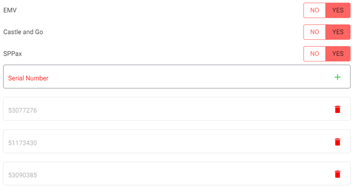 default the Castle and Go and SPPax toggles will be disabled and grayed out. If EMV is enabled, then the Castle and Go and SPPax toggles will automatically be enabled but you can change them as needed.