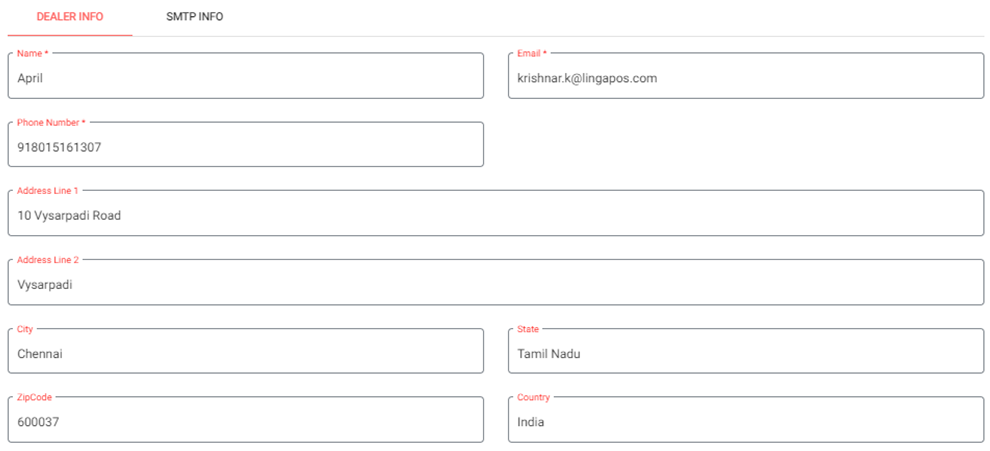 Name - (Mandatory) The name of the Dealer will be shown here.