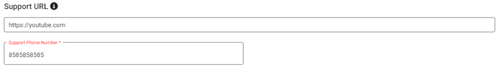 Support Phone Number - (Mandatory) The support phone number. Numbers only with a minimum of 6 digits and maximum of 15 digits.