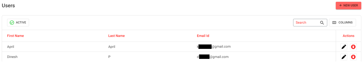Delete (trash can) - Click to delete (deactivate) a User. On the Delete pop-up, select Ok to confirm deleting the User and move to Inactive status. Click Cancel, to return to the main screen without any changes.
