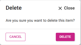 The Delete pop-up appears with the message 'Are you sure you want to delete this item?'.