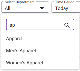 Example: if the dropdown is Department and you wanted to select an apparel option, then begin typing apparel)