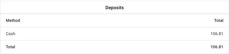 Total: The sum of all deposits.