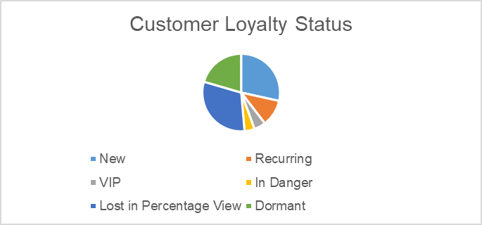 The Customer Loyalty Status graph displays customers membership statuses such as New, Recurring, VIP, In Danger, etc.