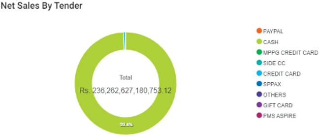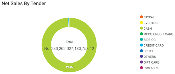- All the tender type that takes place for the selected time period for sales calculation appear here along with the graphical representation.