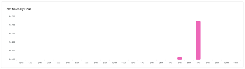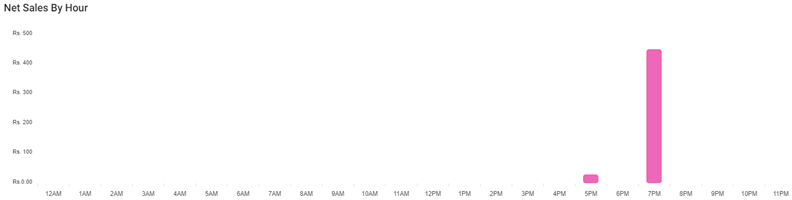 Net Sales broken down by hours. Hours are denoted horizontally and Net Sales vertically.