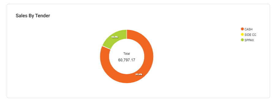 All the tender type that takes place for the selected time period for sales calculation appear here along with the graphical representation.