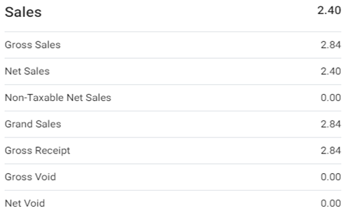 Gross Void: The total amount (including Tax) voided during the selected Time Period.