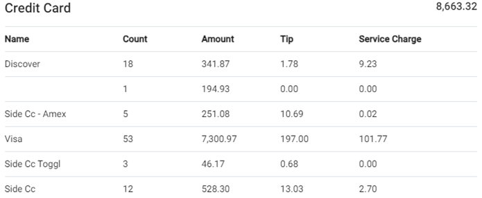 Includes summaries for payment types. All 3 will appear by default. Finally, the Total will be available at the top.