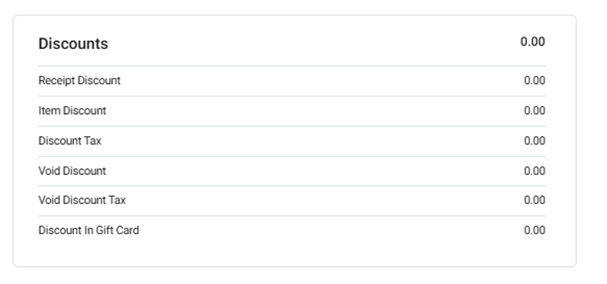 Discount Tax: Discounts Tax during the selected Time Period.