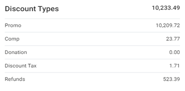 Comp: Comp discounts during the selected Time Period.