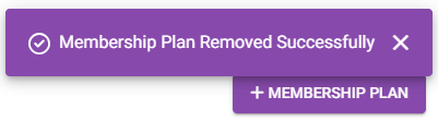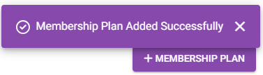 When ready, click Save at the bottom-right. You are returned to the Memberships page under the Plan tab, where the new Plan is added and the confirmation banner appears at the upper-right.