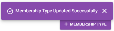 When you’re satisfied with the values entered in the fields, click Save. You’re returned to the main Memberships page under the Type tab and the confirmation banner appears at the upper-right.