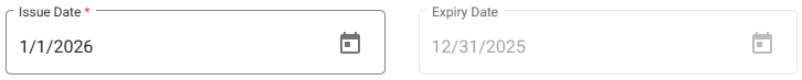 - Examples: If it's a monthly plan, the Expiry Date will populate as the ending date of the same month as the Issue Date. If it's a yearly plan, the Expiry Date will populate as the laste of the same year as the Issue Date.