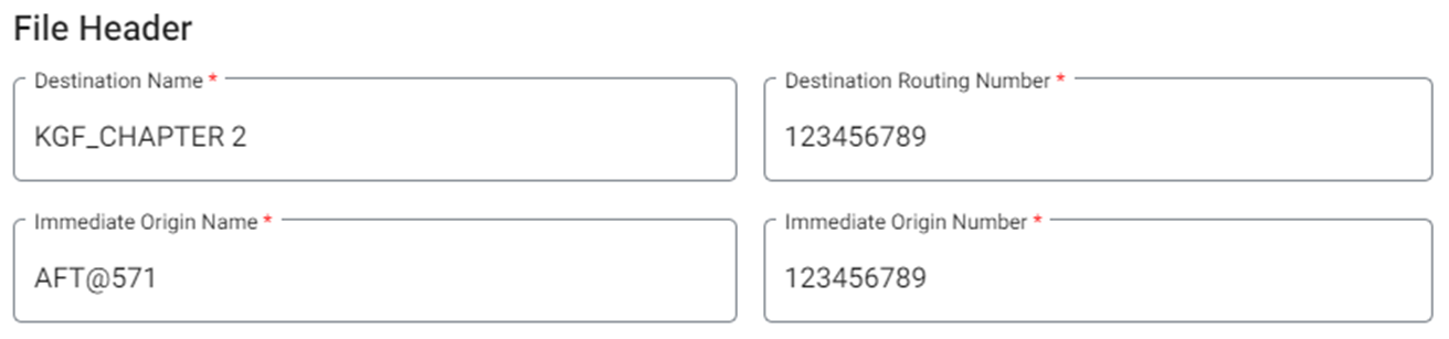 - Originating DFI Identification: The 8 digit routing number of the institution that originated the ACH entry. Allows only numeric values and restrict up to 15 digits. Warning message "Originating DFI Identification should not be more than 8" will show while user gave more than 8 digits.