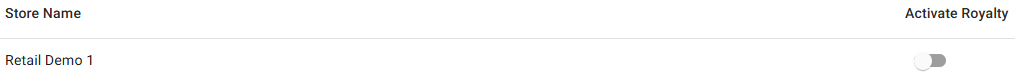 - Identify the Store to activate Royalty for, then click the corresponding Activate Royalty toggle so that it’s to the right (On).