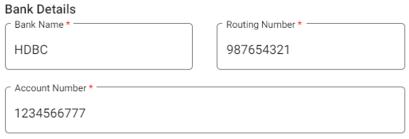 - Enter the Bank Name. Letters, numbers and special characters allowed, up to 50 characters.