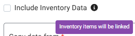 - Select if you want to Include Inventory Data. Note: if checked, Inventory item data will be linked between the Stores.