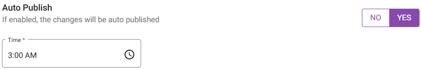Auto Publish – If Enabled (YES), any changes will be auto-published and you must select the Time (clock view). If Disabled (NO), any changes will have to be published manually.