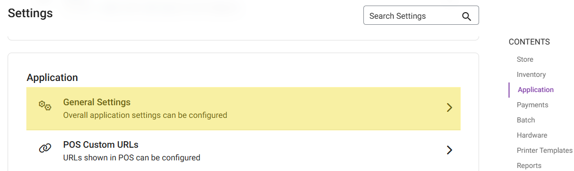 Navigation: Sign into the Back Office for your Retail Store. Select Settings, then under Application select General Settings.