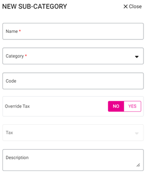Click X Close / Cancel to close the pane without creating / updating a Subcategory.