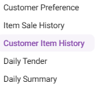 The Customer Item History report page includes all individual item sale details for the selected Time Period.