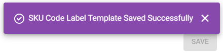 When ready, click Save at the upper-right. After a moment, the confirmation banner 'Label Template Saved Successfully' appears.
