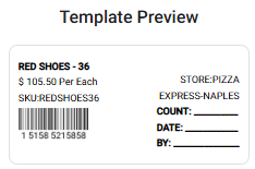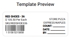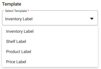 Select a Template for the Label: Inventory, Shelf, Product or Price.