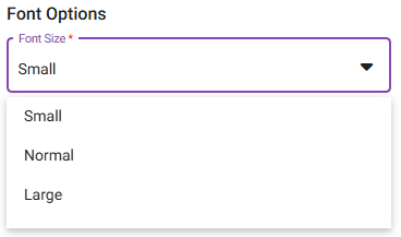 Select the Font Size (Small, Medium, or Large). Note: Availability of size options will be based on your Template selection.
