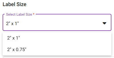 Select the Label size (Width x Length, dimensions in inches): 2" x 1" or 2" x 0.75".