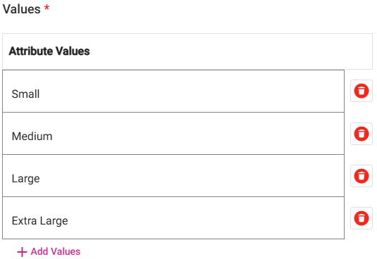To delete a Value, click the corresponding trash can icon.