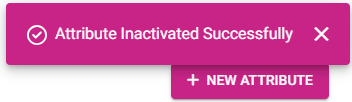 You are returned to the main Attributes page, where the confirmation message 'Attribute Inactivated Successfully' appears.