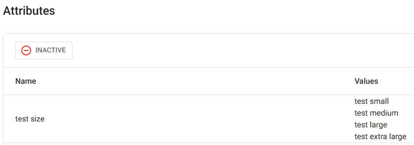 With a Name and at least one Value entered, click Save (or Update) button. You are returned to the main Attributes page where the confirmation appears at the upper-right.