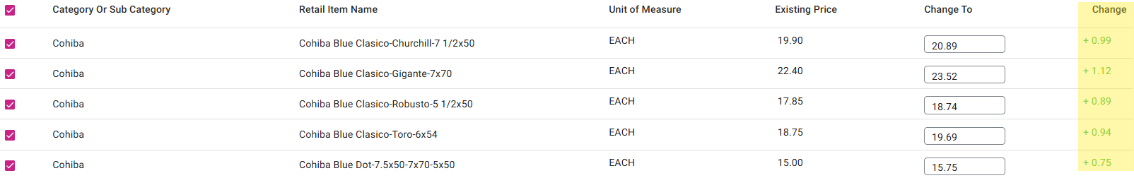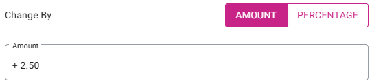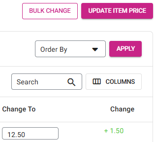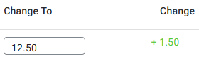 In the corresponding Change To field, enter the new Price. The Change column will update the difference accordingly (a plus [+] sign and green for higher price, and minus [-] and red for lower).