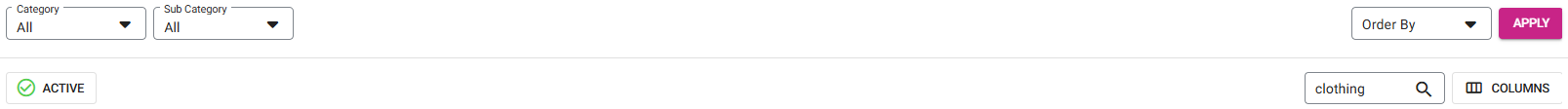 Filter the viewable options by selecting a Category and/or Subcategory from the dropdowns and clicking Apply, or by typing in the Search bar and pressing the Enter key.