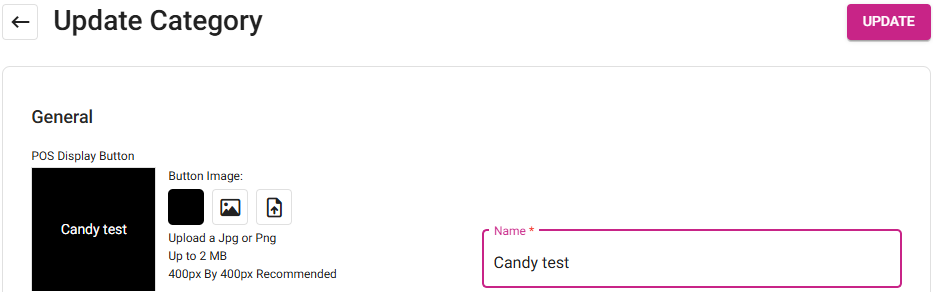 When clicked, the New/Update Category page appears.