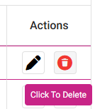 - Identify the Category to be deleted. Then under the Actions column click the corresponding Delete (trash can icon) button.