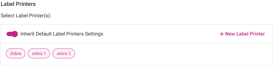 The Inherit Default Label Printer Settings toggle will be available. If enabled, all the Label Printers mapped for the Category will be selected.
