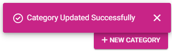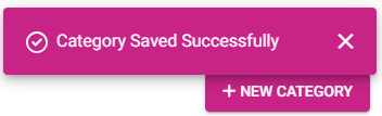 Click Save to create the new Category (or Update on the existing Category). The new Category will be saved or updated. You are returned to the main Categories page with a confirmation appearing in the upper right corner.